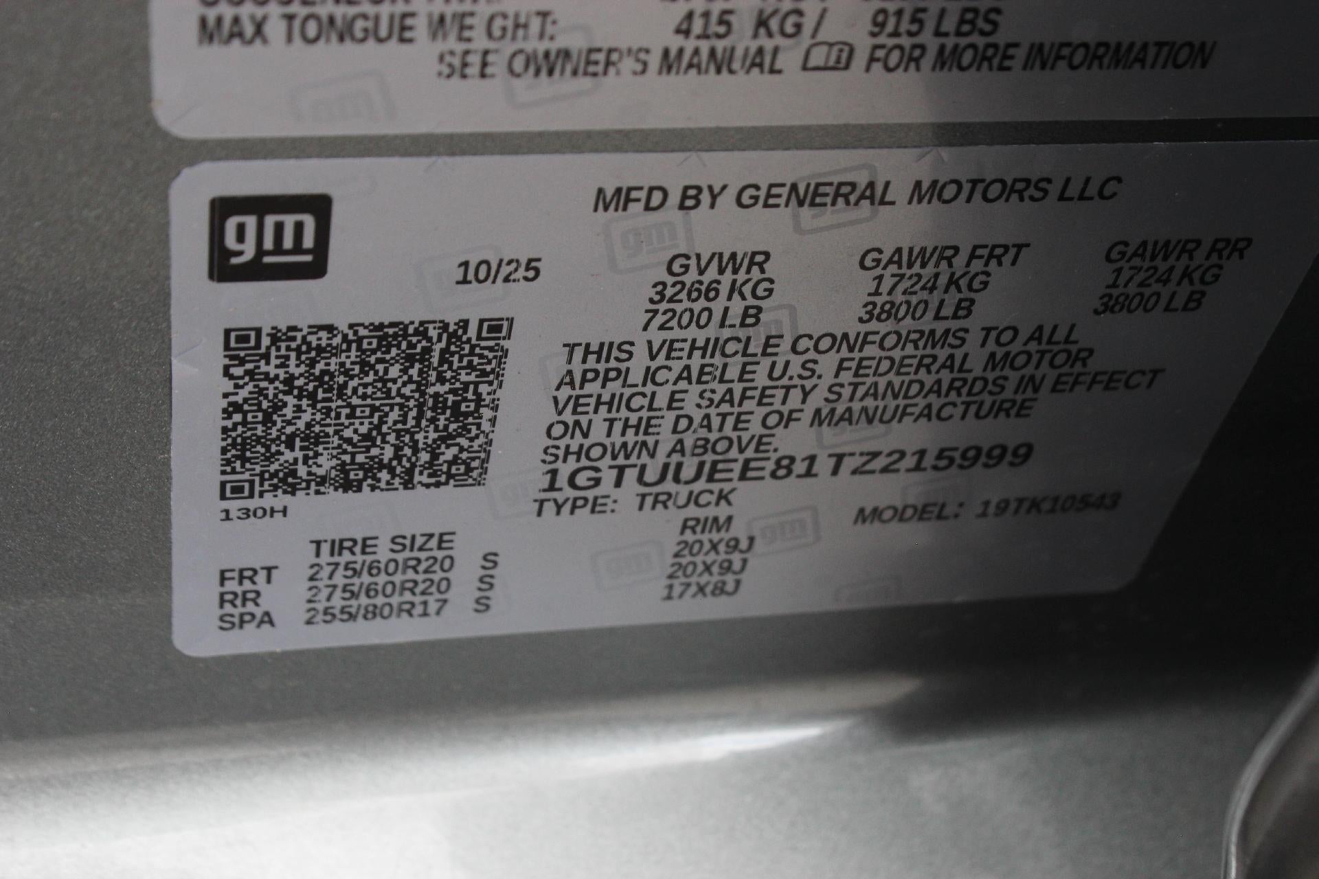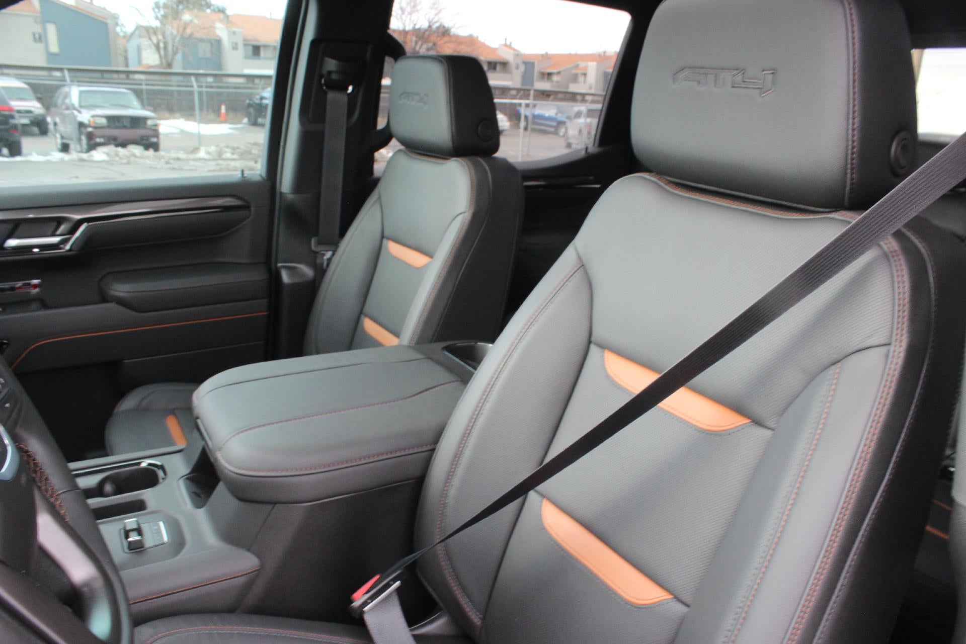 THIS VEHICLE INCLUDES THE FOLLOWING FEATURES AND OPTIONS: AT4 Preferred Package (Power Sliding Rear Window w/Rear Defogger and Universal Home Remote), AT4 Premium Package (Off-Road High Clearance Step (LPO)), Black Badging Package (LPO) (Black GMC Emblems (LPO) and Black Sierra Nameplates (LPO)), Cargo Convenience Package (Console-Mounted Safe (LPO) and Rear Underseat Storage (LPO)), Preferred Equipment Group 4SB (120-Volt Bed Mounted Power Outlet, 120-Volt Interior Power Outlet, 2 Charge/Data USB Ports Inside Center Console, 2 Type-C Charge-Only Rear USB Ports, 2 USB Ports, 220 Amp Alternator, Auto-Locking Rear Differential, Black Chrome Grille Insert Bars, Color-Keyed Carpeting Floor Covering, Deep-Tinted Glass, Electric Rear-Window Defogger, Floor-Mounted Center Console, Front Prem Floor Liners w/Removable Carpet Insert, Front Rain-Sensing Wipers, HD Surround Vision, Heated 2nd Row Outboard Seats, Heated Driver & Front Outboard Passenger Seating, Heavy-Duty Air Filter, Hill Descent Control, Hitch View, In-Vehicle Trailering System App, Integrated Trailer Brake Controller, Keyless Open & Start, LED Cargo Area Lighting, OnStar Services Capable, Perimeter Lighting, Power Door Locks, Power Front Passenger Windows w/Express Up/Down, Power Front Windows w/Driver Express Up/Down, Power Rake & Telescoping Steering Column, Power Rear Windows w/Express Down, Premium Bose 7-Speaker Sound System, Push Button Start, Rear Cross Traffic Braking, Rear Pedestrian Detection, Rear Prem Floor Liners w/Removable Carpet Insert, Rear Wheelhouse Liners, Red Recovery Hooks, Remote Vehicle Starter System, SiriusXM w/360L Trial Subscription, Spray-On Pickup Bedliner w/GMC Logo, Steering Wheel Audio Controls, Theft Deterrent System (Unauthorized Entry), Trailer Camera Provisions, Trailer Side Blind Zone Alert, Ultrasonic Front & Rear Park Assist, Ventilated Driver & Front Passenger Seats, Wi-Fi Hotspot Capable, and Wireless Charging), Technology Package (Bed View Camera, Multicolor 15" Diagonal Head-Up Display, and Rear Camera Mirror), Trailering Package (Hitch Guidance), 10-Way Power Driver Seat Adjuster w/Lumbar, 10-Way Power Passenger Seat Adjuster w/Lumbar, 3.23 Rear Axle Ratio, 4-Wheel Disc Brakes, 7 Speakers, ABS brakes, Air Conditioning, All-Weather Floor Liners w/AT4 Logo (LPO), Alloy wheels, AM/FM radio: SiriusXM with 360L, Apple CarPlay/Android Auto, Auto High-beam Headlights, Auto-dimming door mirrors, Auto-dimming Rear-View mirror, Automatic Emergency Braking, Automatic temperature control, Black Sport Step (LPO), Block heater, Brake assist, Buckle to Drive, Bumpers: body-color, Compass, Delay-off headlights, Deleted Mobile Service Plus, Driver door bin, Driver Memory, Driver vanity mirror, Dual front impact airbags, Dual front side impact airbags, Electronic Stability Control, Emergency communication system: OnStar, Engine Block Heater, Following Distance Indicator, Forward Collision Alert, Front anti-roll bar, Front Bucket Seats, Front Center Armrest, Front dual zone A/C, Front fog lights, Front License Plate Kit, Front Pedestrian Braking, Front reading lights, Front wheel independent suspension, Fully automatic headlights, Heated door mirrors, Heated front seats, Heated rear seats, Heated steering wheel, Illuminated entry, IntelliBeam Automatic High Beam On/Off, Lane Keep Assist w/Lane Departure Warning, Low tire pressure warning, Memory seat, MultiPro Tailgate Audio System by Kicker (LPO), Navigation System, Occupant sensing airbag, Off-Road Suspension, Outside temperature display, Overhead airbag, Overhead console, Panic alarm, Passenger door bin, Passenger vanity mirror, Perforated