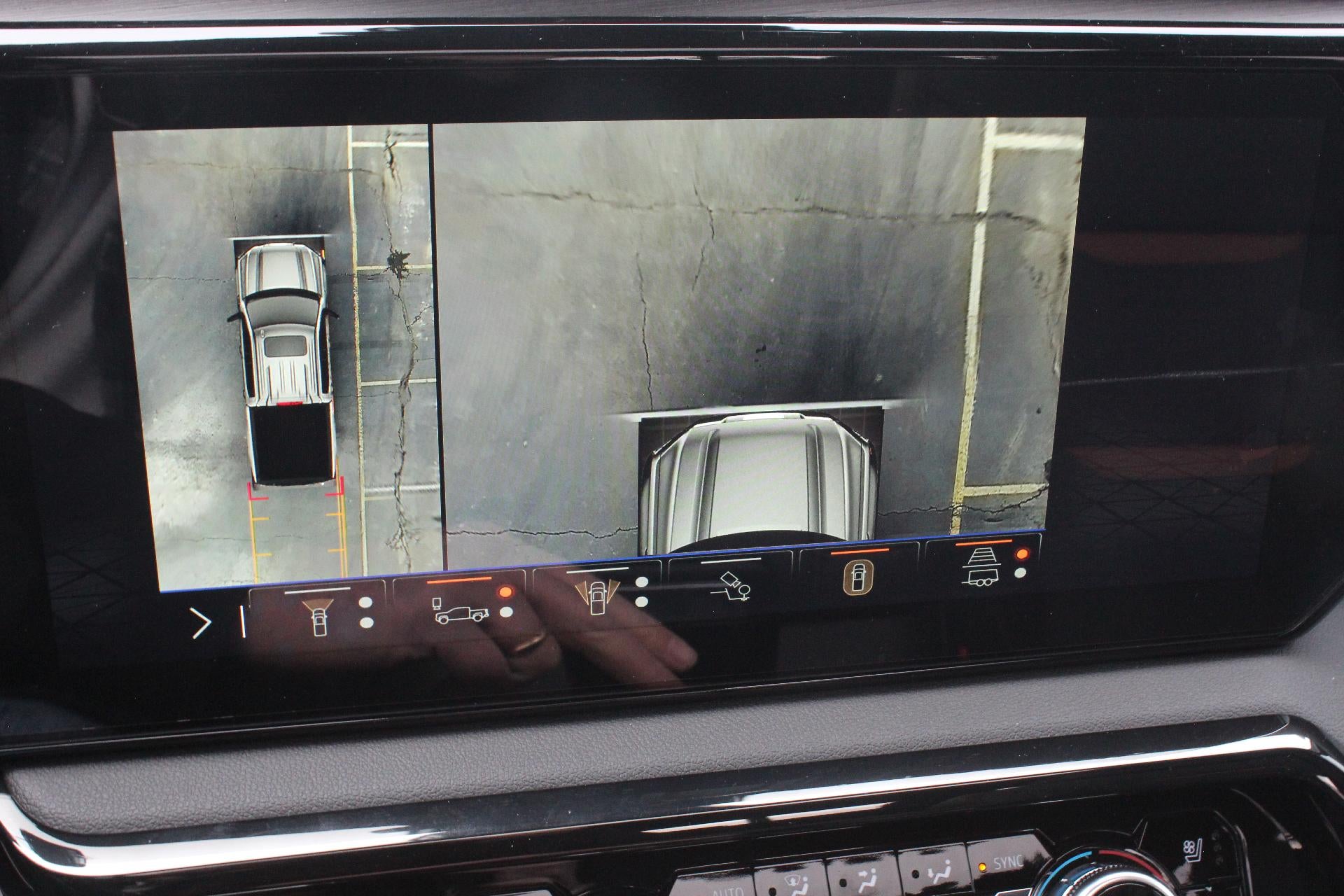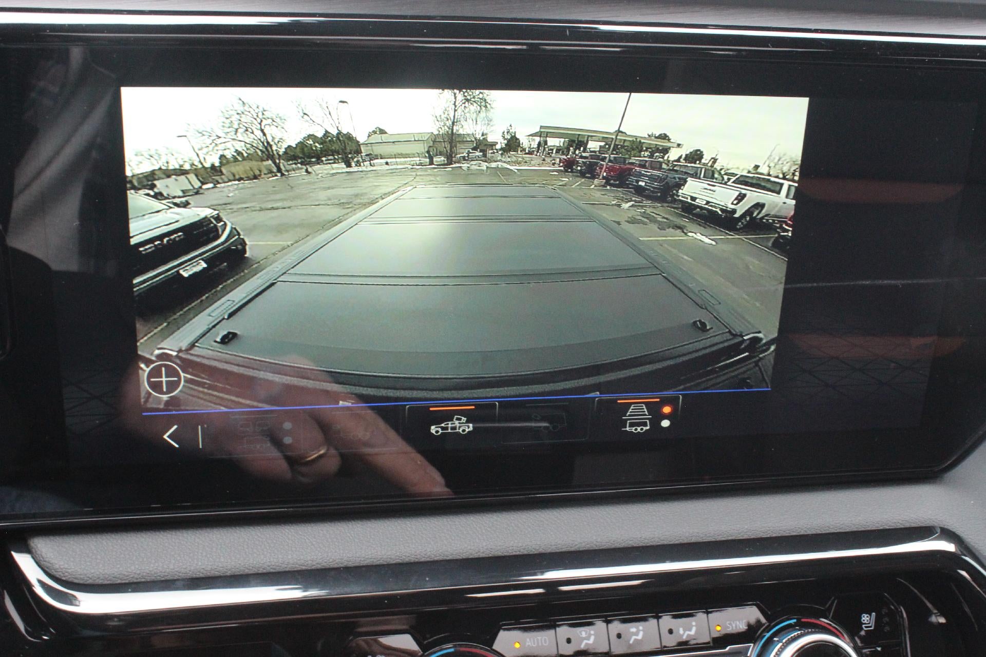 - Allows driver to see inside the cargo bed on the infotainment display to help with 5th wheel or gooseneck hitching and to check cargo