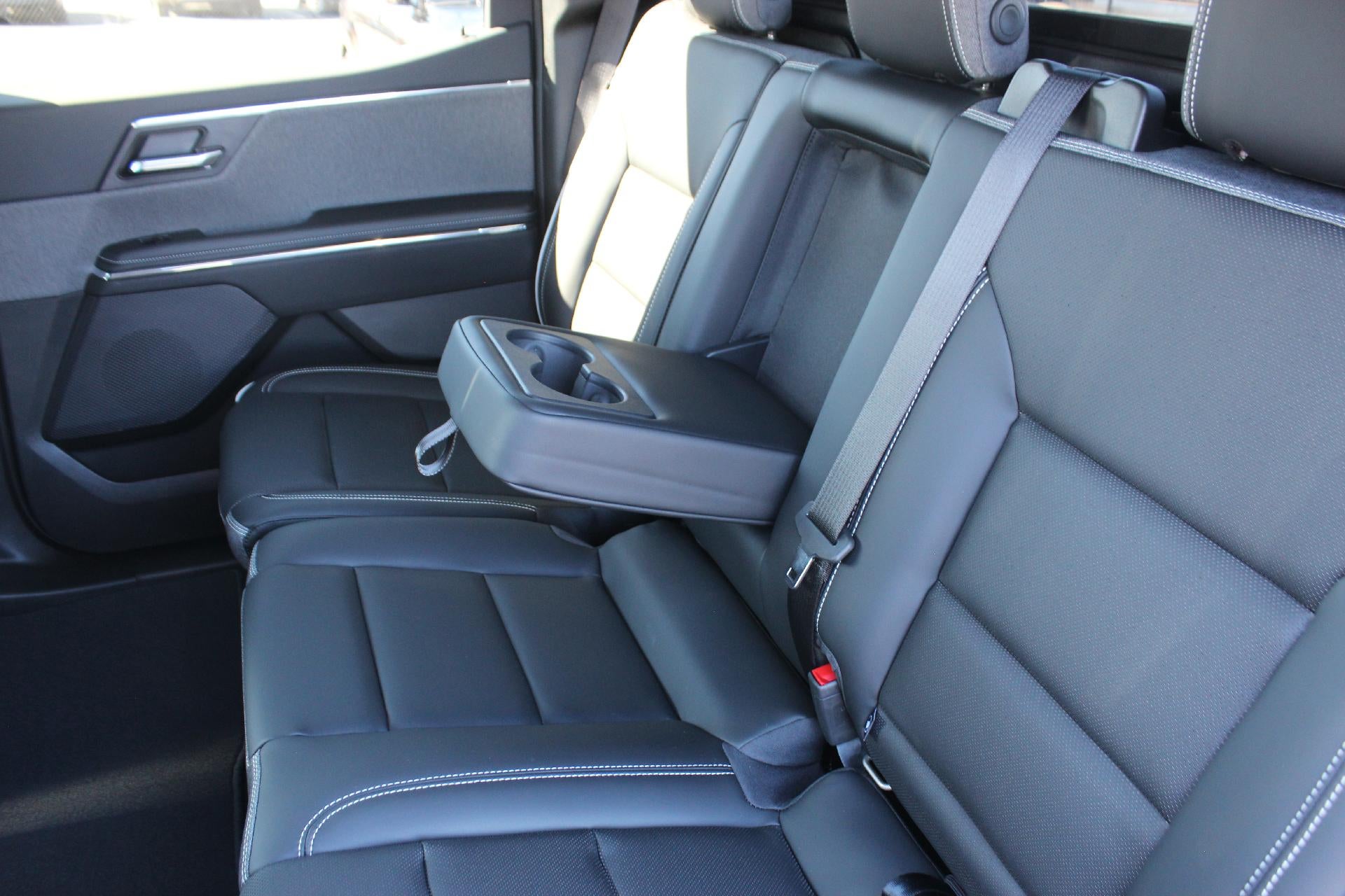 THIS VEHICLE INCLUDES THE FOLLOWING FEATURES AND OPTIONS: Comfort and Convenience Package (8-Way Power Front Passenger Seat Adjuster, Driver 4-Way Power Lumbar Seat Adjuster, Front Passenger 4-Way Power Lumbar Seat Adjuster, Heated Rear Outboard Passenger Cushion, Memory Settings, Outside Heated Power-Adjustable Mirrors, Power Tilt and Telescopic Steering Column, Premium 7-Speaker Bose Sound System, and Ventilated Driver and Front Passenger Seats), Preferred Equipment Group 3SC (6-Speaker Audio System Feature, Blind Zone Steering Assist, Extended Range Battery Pack, Front and Rear Park Assist, Inside Rear-View Auto-Dimming Mirror, Manual Folding Heated Outside Mirrors, Manual Tilt and Telescoping Steering Column, Rear 60/40 Folding Bench Seat, and Wheels: 18" x 8.5" Aluminum Machined Face), Premium Package (4 Bed Mounted 120-Volt Power Outlets, Bed-Mounted 240-Volt Power Outlet, MulitPro Midgate, Rear 60/40 Split Seat with Center Armrest, and Spray-on Pickup Bedliner), Technology Package (Bed View Camera, Cargo Lamps, and Rear Camera Mirror), 11.63 Axle Ratio, 4-Way Manual Front Passenger Seat Adjuster, 4-Wheel Disc Brakes, 6 Speakers, 8-Way Power Driver Seat Adjuster, ABS brakes, Air Conditioning, Alloy wheels, AM/FM radio: SiriusXM with 360L, Auto High-beam Headlights, Auto-dimming Rear-View mirror, Automatic temperature control, Blind Zone Steering Assist with Trailering, Brake assist, Bumpers: body-color, CoreTec Seating Surfaces, Delay-off headlights, Driver 2-Way Power Lumbar Seat Adjuster, Driver door bin, Driver vanity mirror, Dual front impact airbags, Dual front side impact airbags, Electronic Stability Control, Emergency communication system: OnStar, Four wheel independent suspension, Front anti-roll bar, Front Bucket Seats, Front Bucket Seats with Center Console, Front dual zone A/C, Front License Plate Kit, Front reading lights, Fully automatic headlights, Garage door transmitter, Heated door mirrors, Heated Front Driver and Passenger Seats, Heated front seats, Heated steering wheel, Low tire pressure warning, Navigation System, Occupant sensing airbag, Outside temperature display, Overhead airbag, Overhead console, Panic alarm, Passenger door bin, Passenger vanity mirror, Power door mirrors, Power driver seat, Power steering, Power windows, Premium audio system: Premium GMC Infotainment System, Radio data system, Radio: 16.8" Diagonal Premium GMC Infotainment System, Rain sensing wipers, Rear fog lights, Rear reading lights, Rear seat center armrest, Rear step bumper, Rear window defroster, Remote keyless entry, Security system, SiriusXM with 360L Trial Subscription, Smart Trailer Integration Indicator, Speed control, Speed-sensing steering, Split folding rear seat, Sport steering wheel, Standard Suspension, Steering wheel mounted audio controls, Telescoping steering wheel, Tilt steering wheel, Traction control, Trailer Camera Provisions, Trip computer, and Variably intermittent wipers