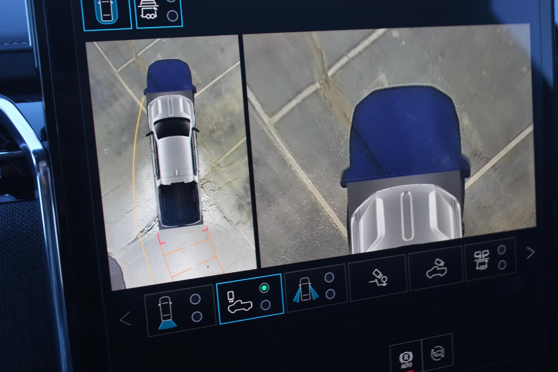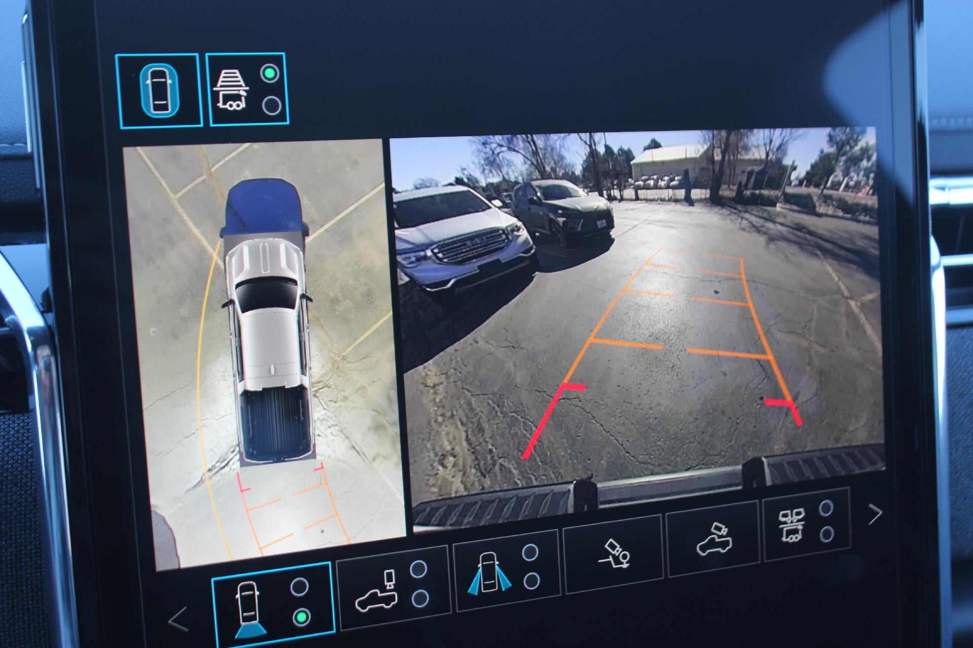 - Allows driver to see inside the cargo bed on the infotainment display to help with 5th wheel or gooseneck hitching and to check cargo