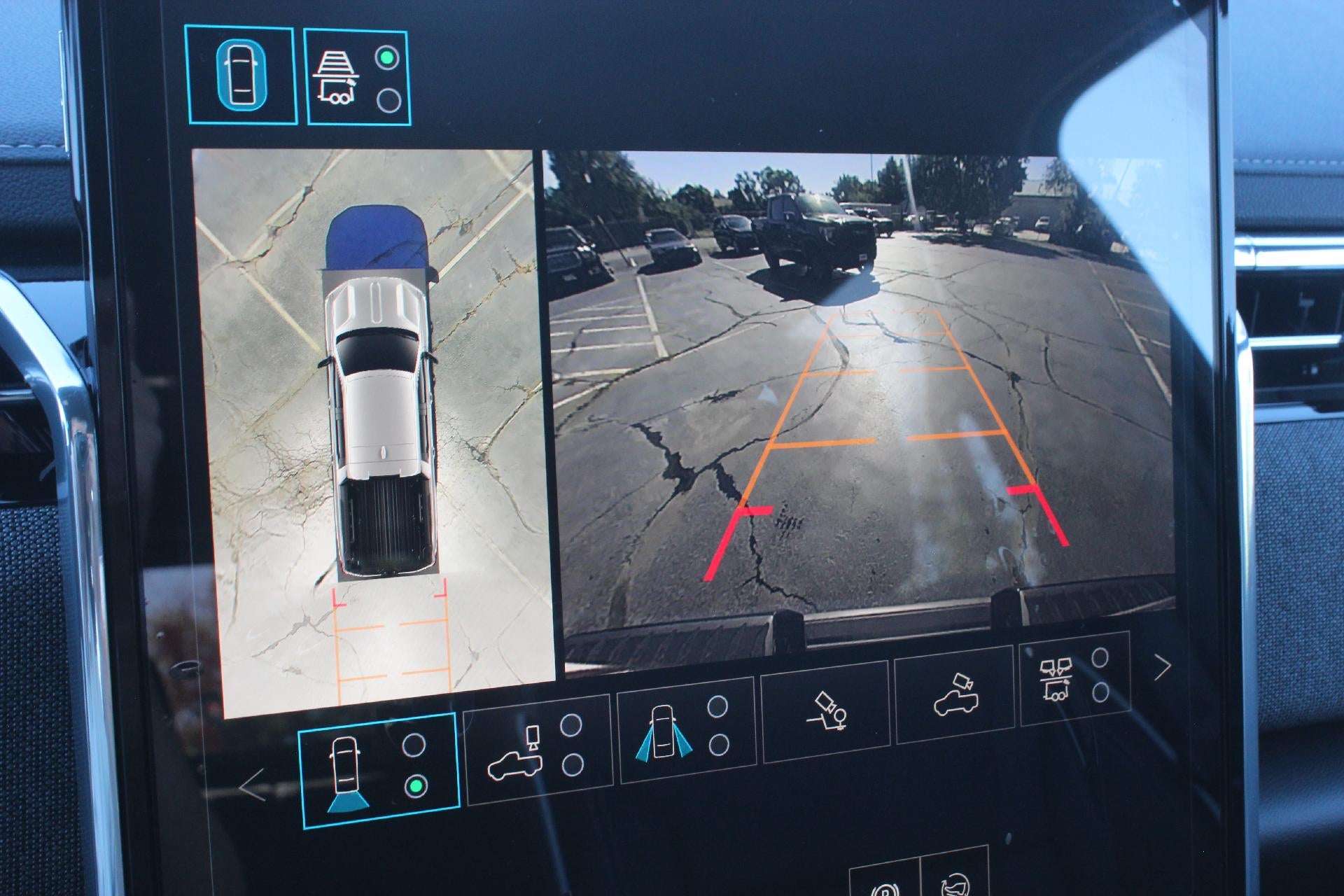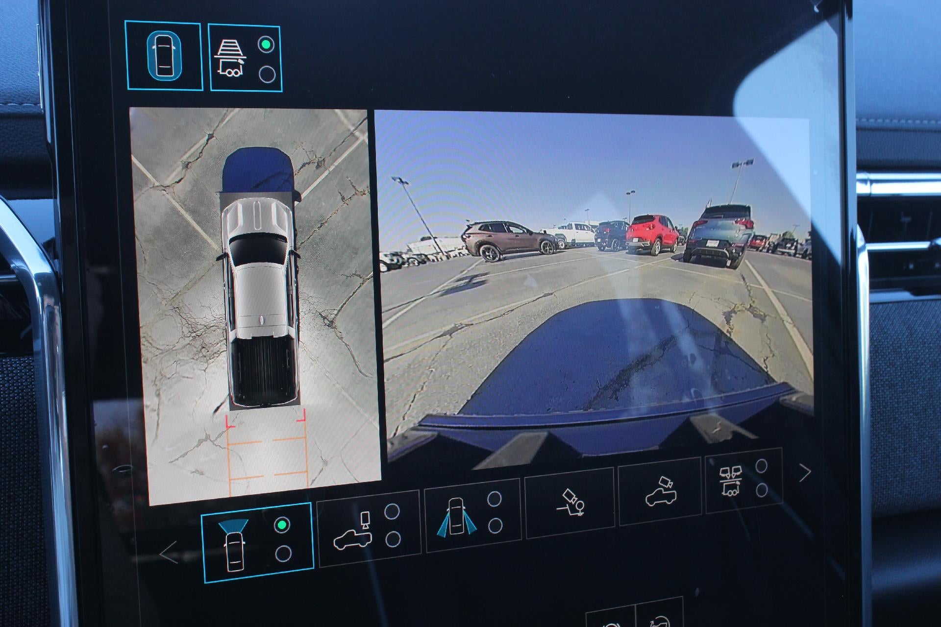 - Allows driver to see inside the cargo bed on the infotainment display to help with 5th wheel or gooseneck hitching and to check cargo